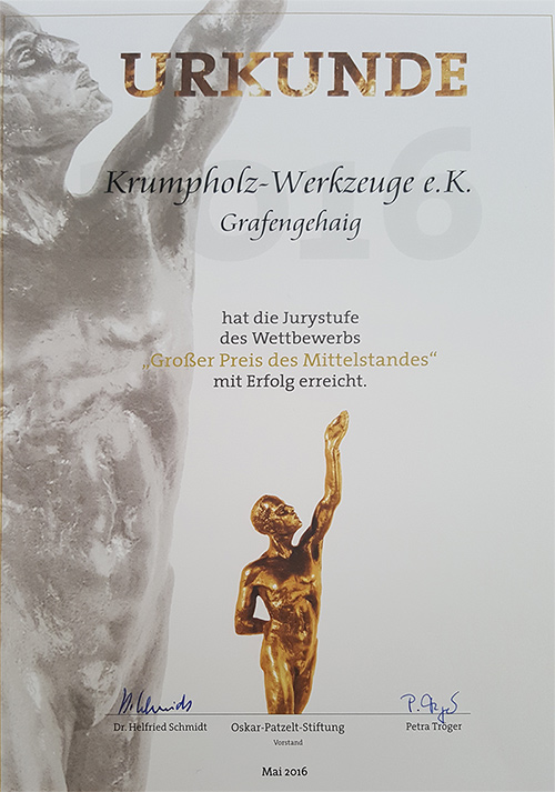 Wir haben die Jurystufe beim „Großen Preis des Mittelstandes“ der Oskar-Patzelt-Stiftung erreicht. Robert Knitt hat uns die Urkunde feierlich überreicht.