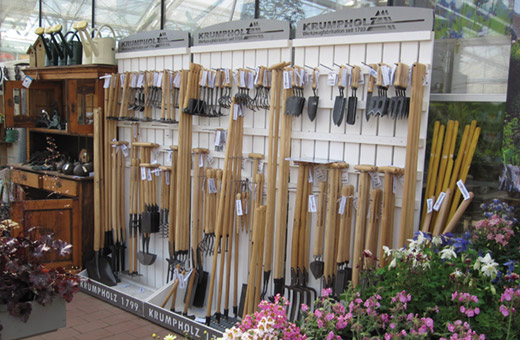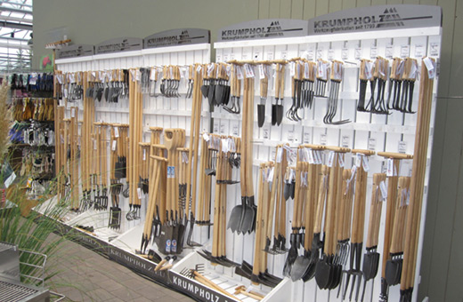 Auf Kundenwunsch werden unsere Werkzeuge in speziellen Präsentationsdisplays geliefert. Die vorwiegend für Gartencenter angefertigten Displays werden nach Kundenwunsch zusammengebaut und mit verschiedenen Werkzeugen ausgestattet.