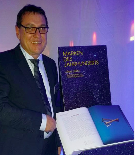 Der Inhaber Claus Krumpholz jetzt in Berlin überreichte Preis wird alle drei Jahre von Dr. Florian Langenscheidt durch Aufnahme ausgewählter deutscher Marken in sein Markenkompendium „Marken des Jahrhunderts – Stars 2016“ verliehen.